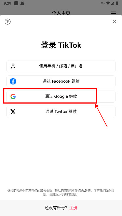 3、如果选择tiktok账户登录或者注册,点击第一个;
