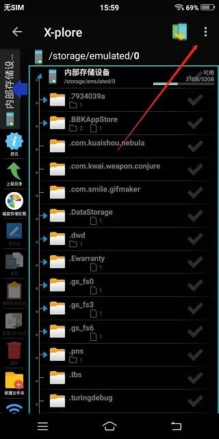 1、下载安装本软件后打开x-plore文件管理器,点击右上角三个点,