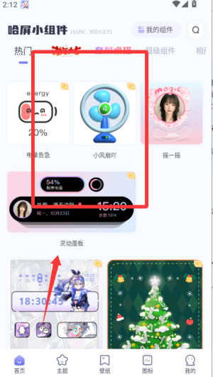 4、然后找到“哈屏小组件”,选择好尺寸,长按添加到桌面