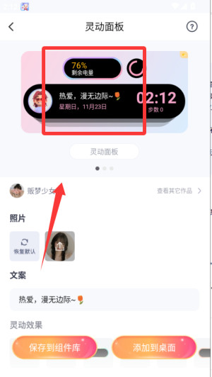 2、接着,选择好主题、字体颜色,背景等元素,并点击“保存到组件库”,也可以直接点击添加桌面,如下图所示: