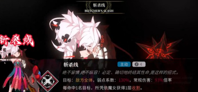 牧的核心技能“斩杀线”每五回合可释放一次,能够对全体敌人造成89%基础伤害,并附加33点弱点伤害。该技能的独特之处在于,每层收割效果可额外提升5%的弱点伤害。这意味着当敌方单位存在多层收割状态时,牧的群体输出能力将大幅提升。尤其是在面对拥有高弱点值的BOSS时,这一机制能有效实现破防与高效压制,使她在群攻场景中表现尤为突出。