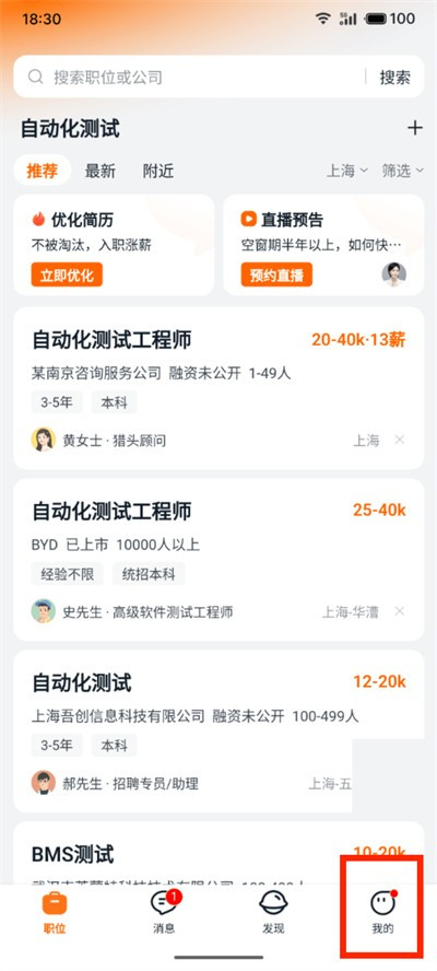首先打开猎聘app,进入软件后点击界面右下角【我的】;