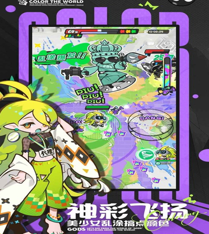 乱涂彩世界是一款二次元风格的解压涂鸦游戏,它以独特的染色机制为核心玩法,玩家需要操控神明角色通过涂鸦染色、弹幕射击等方式对抗外星人,夺回被吸取的地球色彩。游戏背景设定为外星人夺取地球色彩,玩家组建神明小队展开冒险。