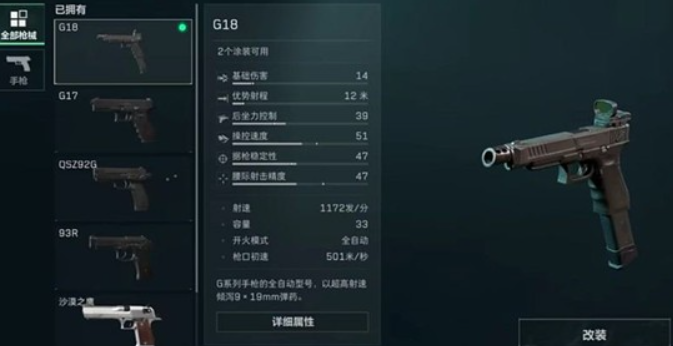 在《三角洲行动》中,G18作为一把高射速武器,其改装核心在于提升稳定性与操控性,从而更好地发挥其连续输出优势。许多玩家获得这把武器后非常好奇该怎么改装,以下是小编为玩家们准备的详细改装攻略,助玩家们顺利改装出一把合适自己的枪械!