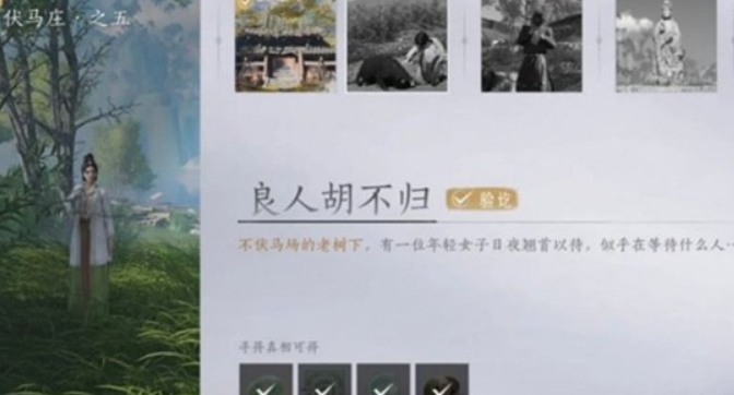 玩家需要先前往不伏马场,在那里找到NPC柳五娘,与她对话就能接取良人胡不归任务。