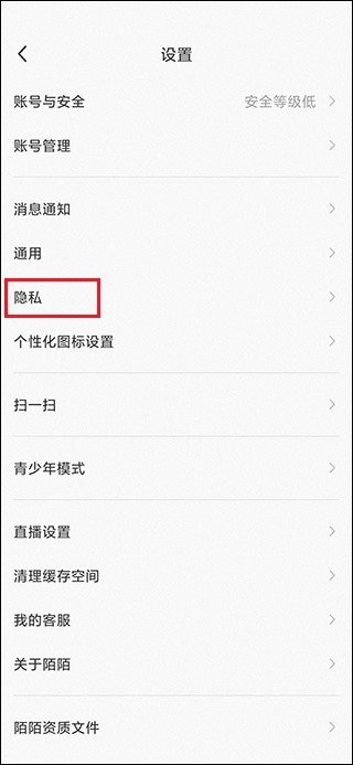 进入到隐私设置界面,将屏蔽手机联系人选项右侧的开关按钮打开即可;