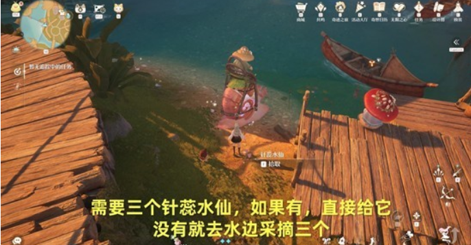 或者直接去神女之家的上面找到一个橙色系的菇菇人,和它对话,也可以接取任务;