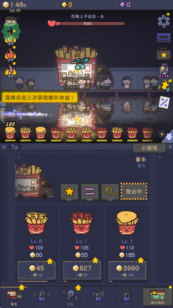 3、点击餐车内的员工可以加快订单的完成速度还会触发额外收益