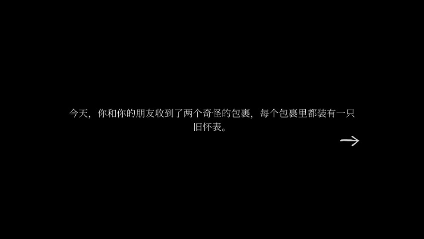 纸皮上的提示:一起回到过去,不要忘了把钟表上紧。