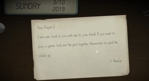 玩家一开篇需要破解的谜题是根据玩家二给其提供的线索来的,信件当中的内容也是不一样的;