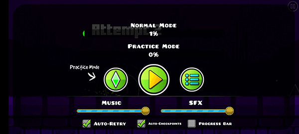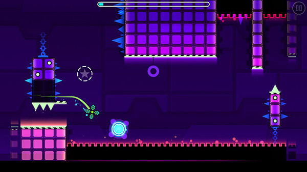 几何冲刺完整版(GeometryDash)是采用像素画风的横版跳跃休闲游戏。玩家在游戏内需要不断的向前奔跑并躲避前方各种奇怪的机关和障碍物。设有各种挑战模式与陷阱,玩家需要通过跳跃、冲刺等动作躲避各种障碍物。几何冲刺完整版下载里需要根据音乐节奏去跳跃,碰到障碍物则无法通关,这样就会直接导致失败。